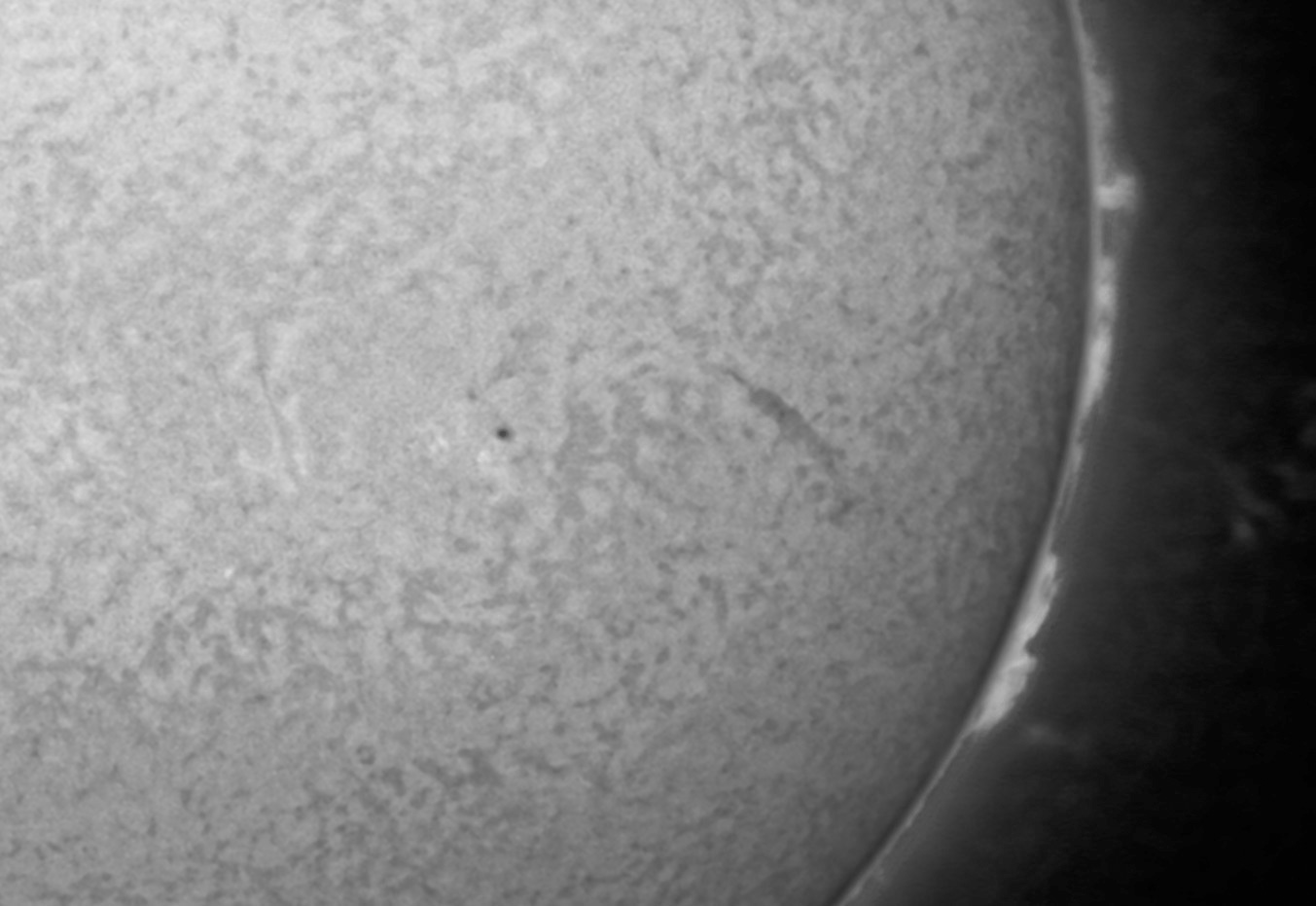 Esta es una imagen del Sol en H-Alpha. H-Alpha es un tramo estrecho de longitud de onda en la parte del espectro correspondiente a la luz roja, y es emitida y absorbida por el hidrógeno.