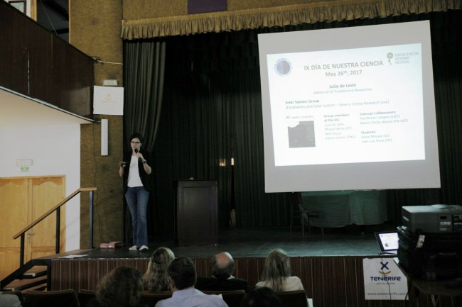 Julia de León, investigadora del IAC, durante su intervención en el Día de Nuestra Ciencia del IAC. Foto: Elena Mora (IAC)