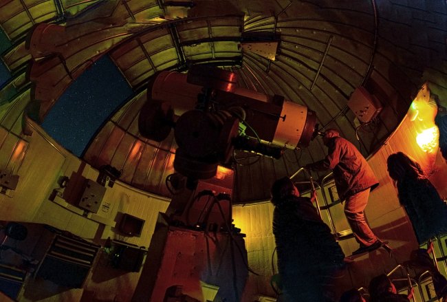 Juan Jesús Armas Marcelo y su esposa con Alfred Rosenberg, astrofísico y divulgador del IAC, observando Júpiter y Saturno con el telescopio MONS, ubicado Observatorio del Teide (Izaña, Tenerife). Crédito: Elena Mora (IAC).