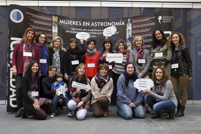 Mujeres del IAC, astrónomas e ingenieras en su mayoría, que organizaron y participaron en esta iniciativa por el Día Internacional de la Mujer y la Niña en la Ciencia. Crédito: Elena Mora (IAC).