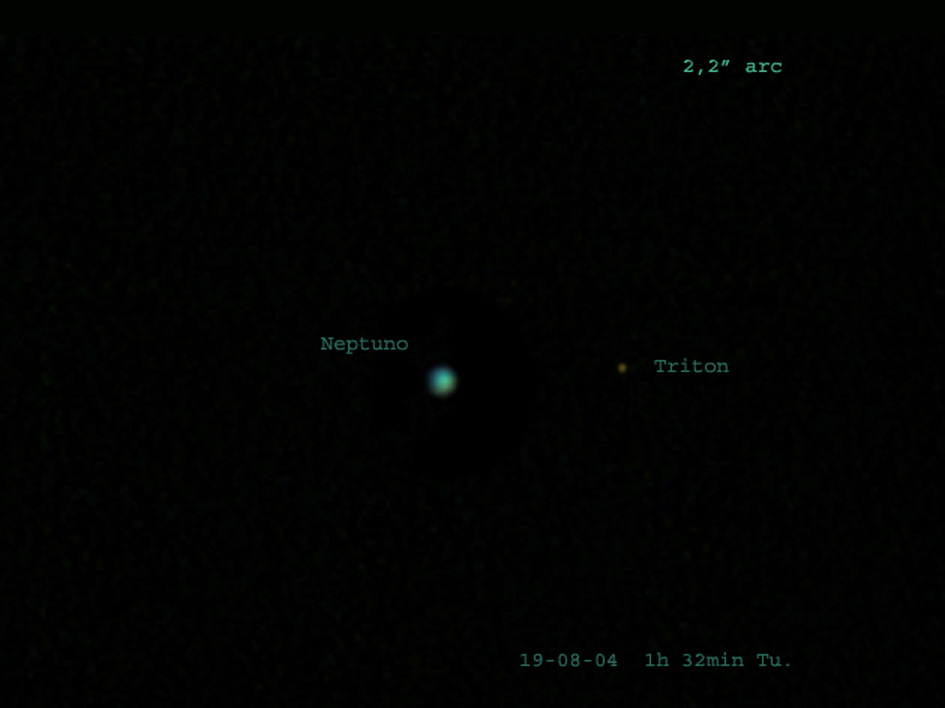 Imagen del planeta Neptuno y uno de sus satélites, Tritón.