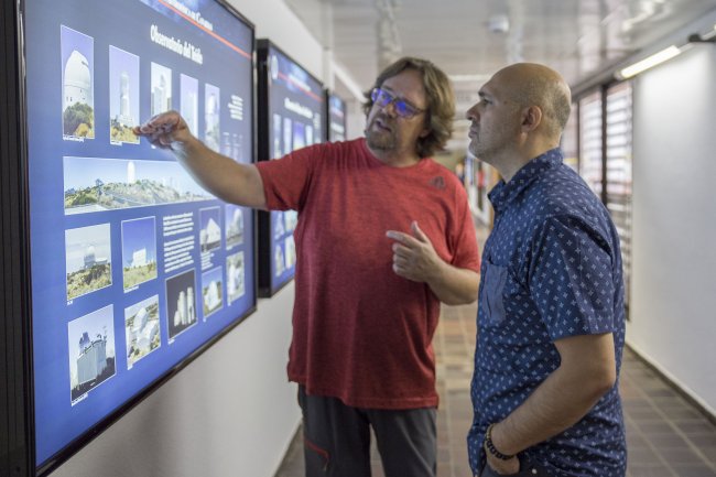 Nicolás Melini en la sede central del IAC con Alfred Rosenberg, astrofísico y divulgador del IAC. Crédito: Elena Mora (IAC).