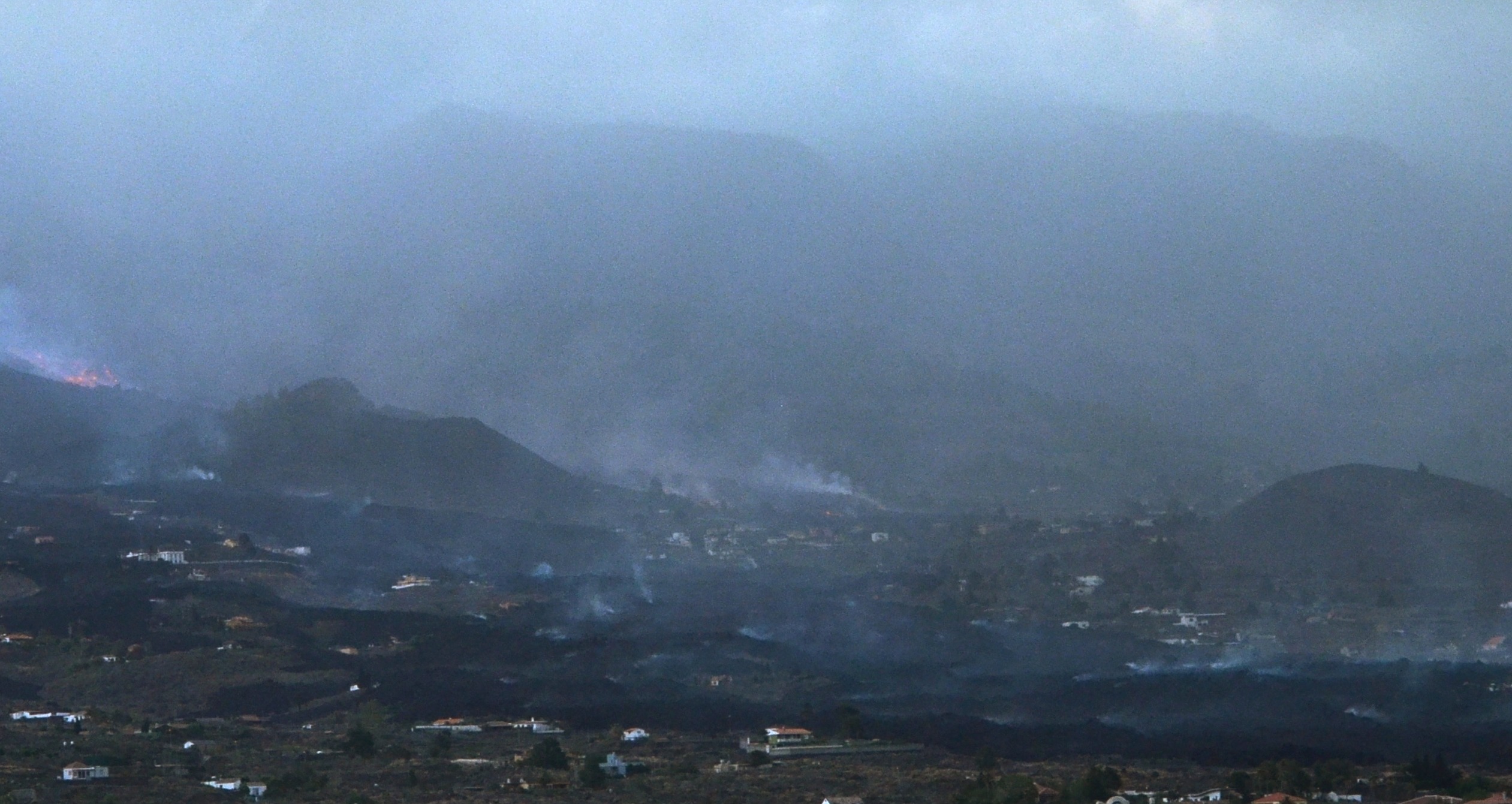 El volcán de Cumbre Vieja (La Palma) cubierto por la nube de humo y ceniza. Imagen tomada en el espectro visible, con una cámara Nikon. Crédito: Sara González and Carlos Colodro (IACTEC Espacio)
