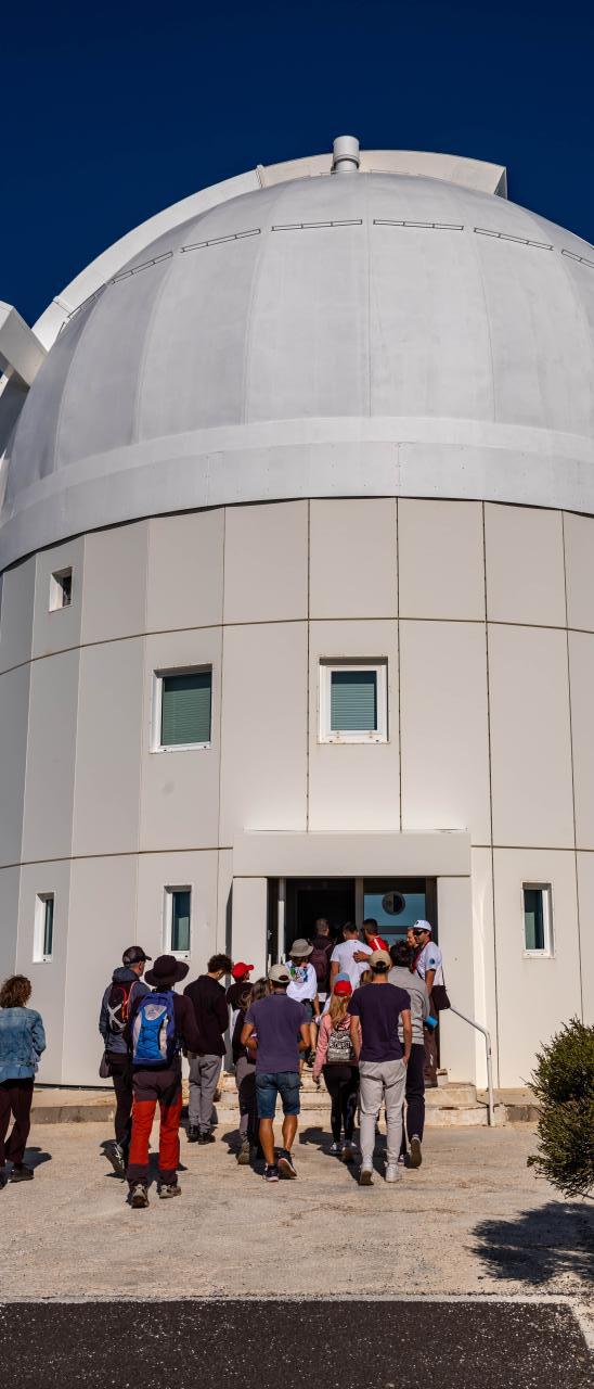 Visitantes acceden al interior de la Optical Ground Station, uno de los telescopios de la Agencia Espacial Europea en el Observatorio del Teide, durante las Jornadas de Puertas Abiertas 2023.