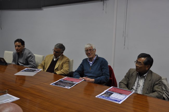 De derecha a izquierda: Masanori Iye, Gregory Fahlman y Thomas Soifer durante su reunión en La Palma con representantes del IAC y autoridades locales, provinciales y autonómicas. Crédito: Javier Licandro.