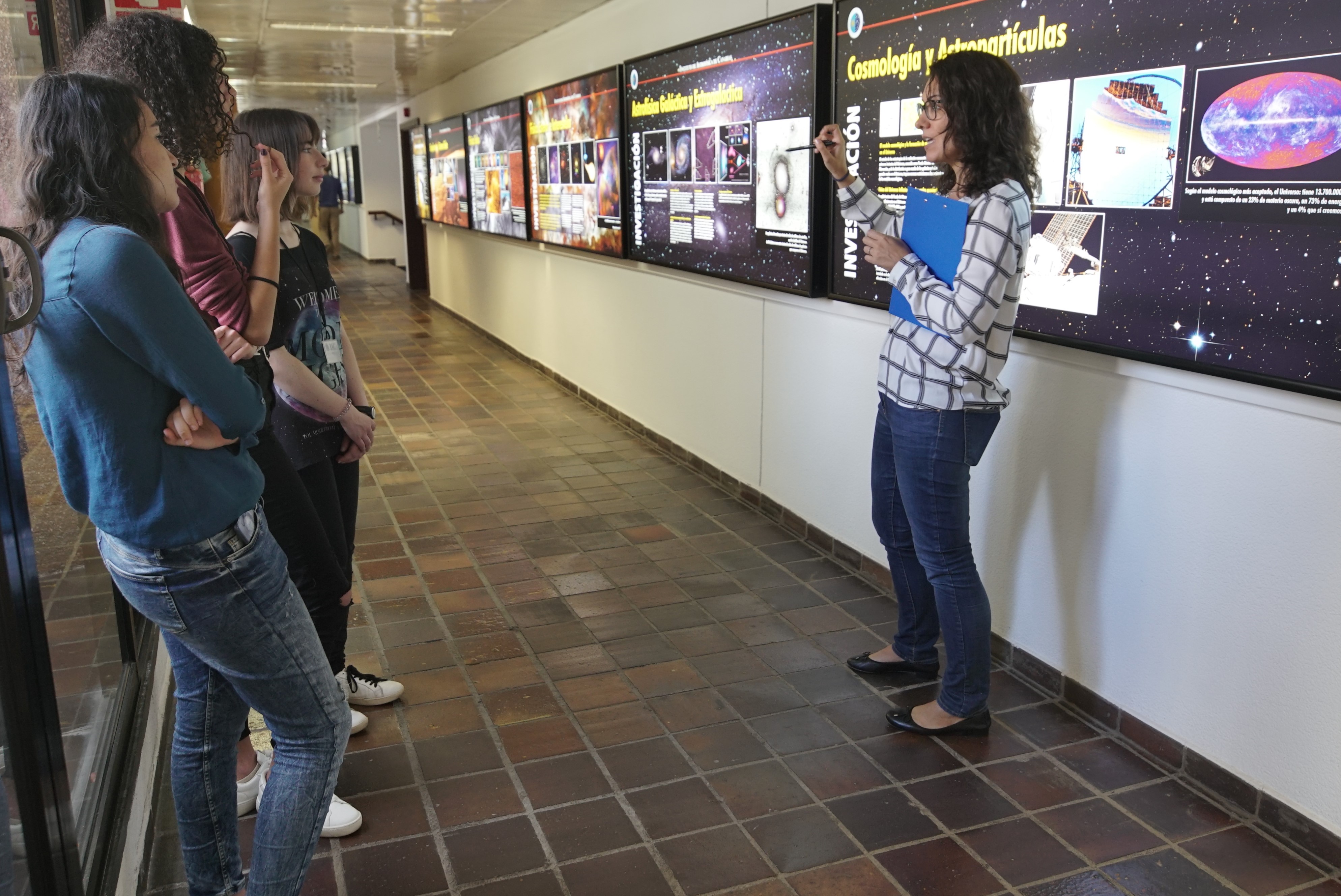 Sandra Benítez habla sobre las áreas de investigación del IAC a las tres participantes del programa Canarias Masterclass que visitaron el IAC el pasado 13 de junio. Crédito: Tamara Muñiz Pérez (IAC).