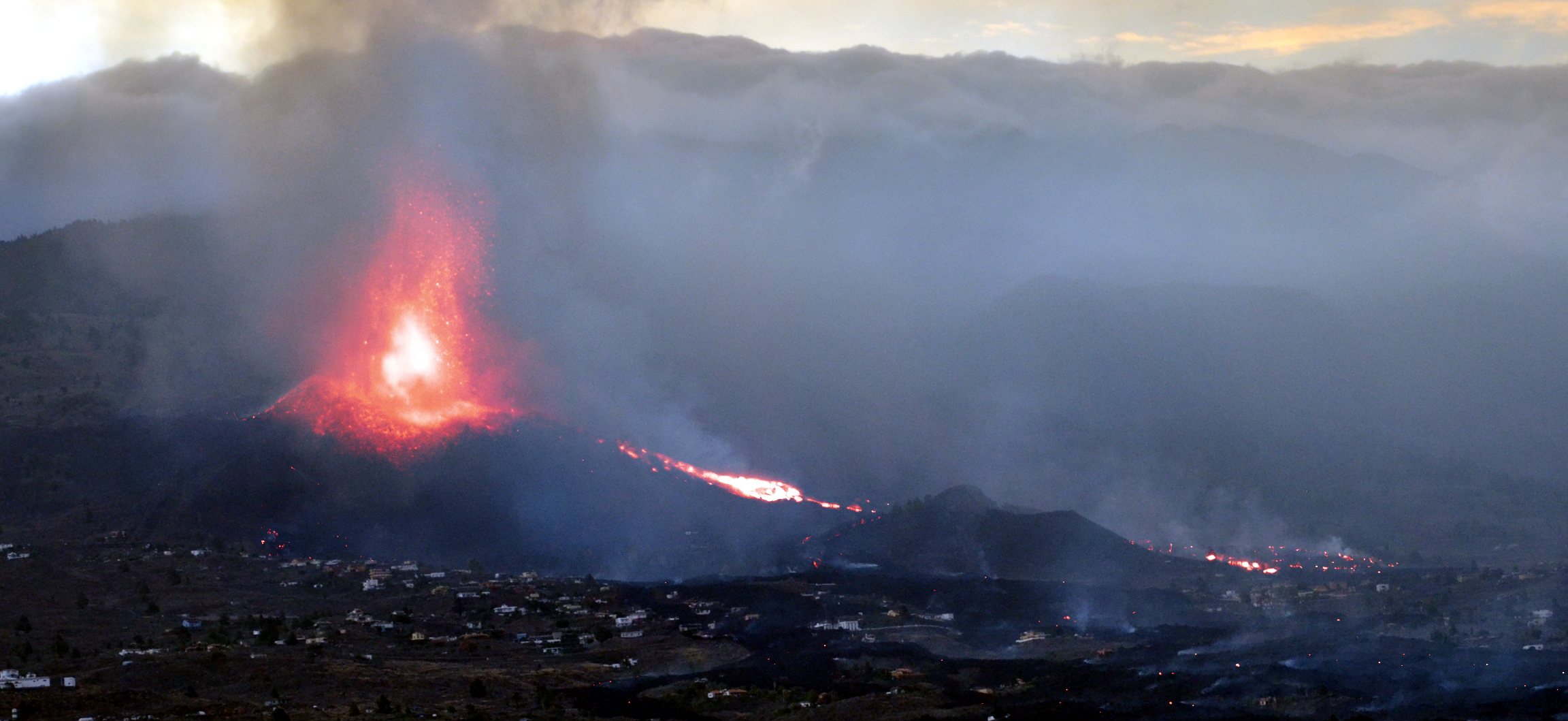 Resultado de la prueba de campo realizada con la réplica de DRAGO el día 22 de septiembre de 2021 a las 08:00 hora local. En la imagen se ha superpuesto la imagen SWIR obtenida por DRAGO en el mismo instante de tiempo, de manera que se aprecia claramente su capacidad de atravesar nubes de partículas como las que emite un volcán. Crédito: IACTEC-Espacio.